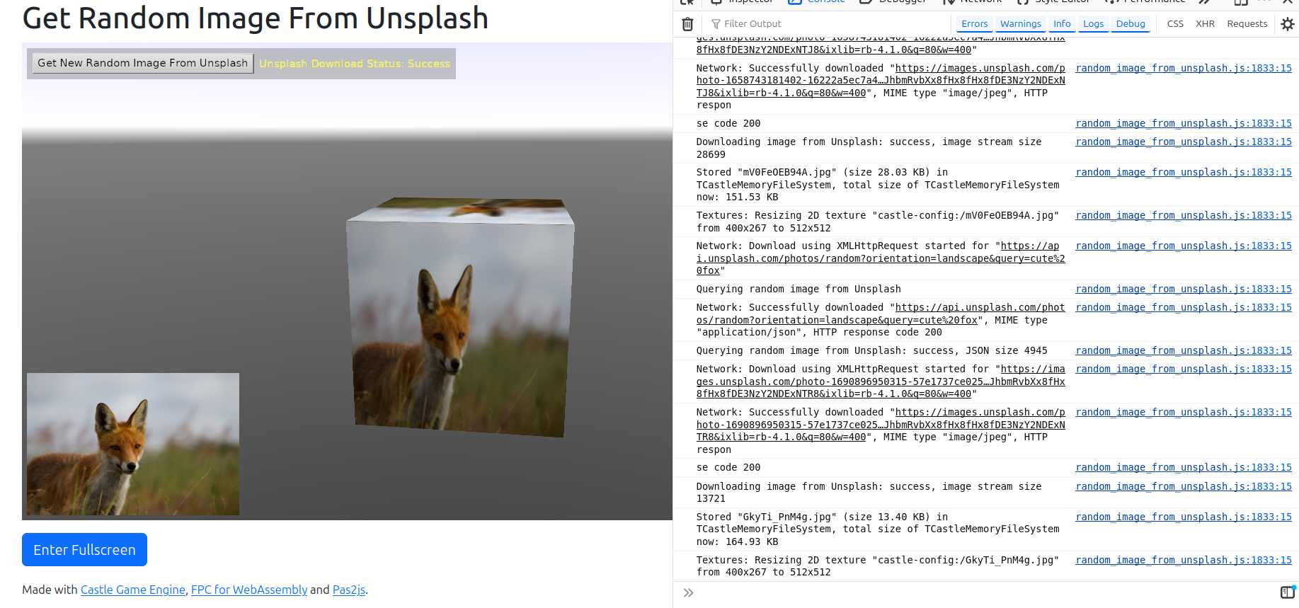 TCastleDownloadclass works on the web now. It allows to make HTTP requests, e.g. download files or communicate with REST APIs. See URLs, loading resources and Multi-player (network communication) for general usage description.Underneath, it uses XMLHttpRequest which is the standard way to make HTTP requests on the web. It supports all HTTP methods, custom headers, progress monitoring and generally all features of our